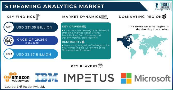 The Streaming Analytics Market size was valued at USD 22.97 Billion in 2023 and is expected to reach USD 231.35 Billion by 2032, and grow at a CAGR of 29.26 % over the forecast period 2024-2032.