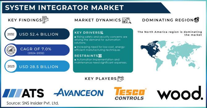 The System Integrator Market Size was valued at USD 28.5 Billion in 2023. It is expected to grow to USD 52.4 Billion by 2032 and grow at a CAGR of 7.0% over the forecast period of 2024-2032.